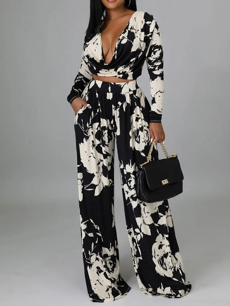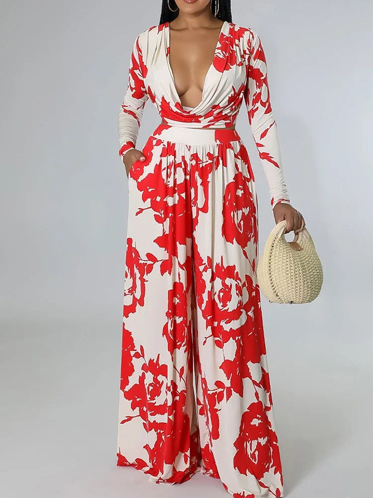 Imagine an outfit that not only highlights your best features but also makes you feel confident and effortlessly beautiful. The deep V-neckline adds an elegant and feminine touch, while the wide trouser legs ensure maximum freedom of movement. The lightweight material drapes over the body, creating a sense of luxury wherever you are.